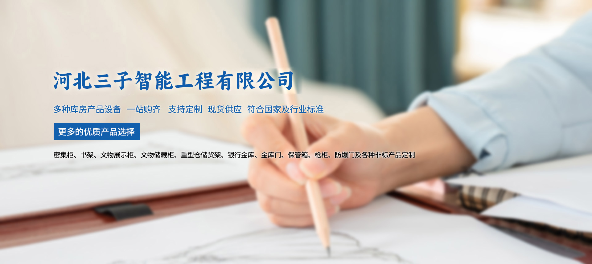 河北三子智能工程有限公司主營(yíng)密集柜、書架、文物展示柜、文物儲(chǔ)藏柜、重型倉儲(chǔ)貨架、銀行金庫、金庫門、保管箱、槍柜、防爆門及各種非標(biāo)產(chǎn)品定制。我們集研發(fā),設(shè)計(jì),生產(chǎn),銷售和服務(wù)于一體,擁有國(guó)內(nèi)先進(jìn)的設(shè)備和專業(yè)的制作團(tuán)隊(duì),我們秉承踏實(shí),創(chuàng)新,責(zé)任的企業(yè)精神服務(wù)于檔案存儲(chǔ),倉儲(chǔ)物流,農(nóng)業(yè)部,博物館,美術(shù)館,銀行,部隊(duì),學(xué)校等多個(gè)領(lǐng)域,我們始終堅(jiān)持用戶至上和精益求精為客戶提供優(yōu)質(zhì)的產(chǎn)品及服務(wù)。